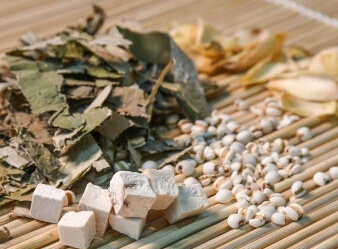 材料:干荷叶+百合+茯苓+蜂蜜,各5g。