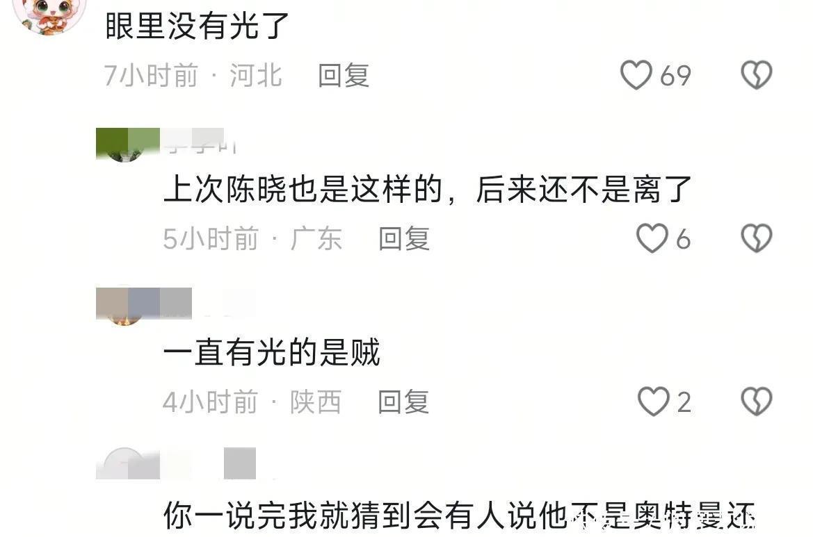 这让我念念到了其时陈晓婚后,有东谈主说陈晓成婚后莫得眼里莫得光了,陈妍希霸气讲演,他又不是奥特曼,眼里怎样会有光?