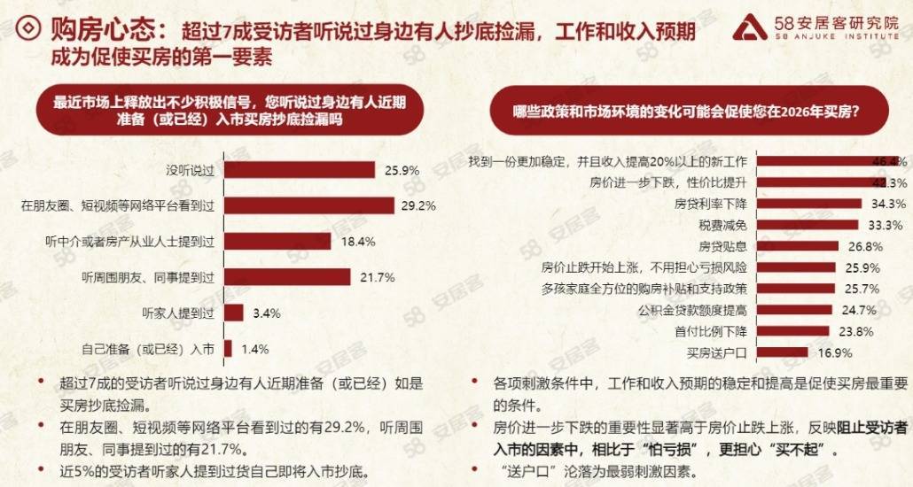 不外,置业意向并未平直颐养为立即手脚。购房者的入市要求判断更趋审慎:“管事与收入升迁”“房价进一步下行”“房贷利率下落”被视为影响2026年购房有打算的三项要害身分。