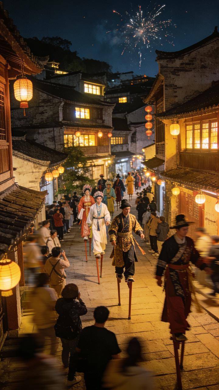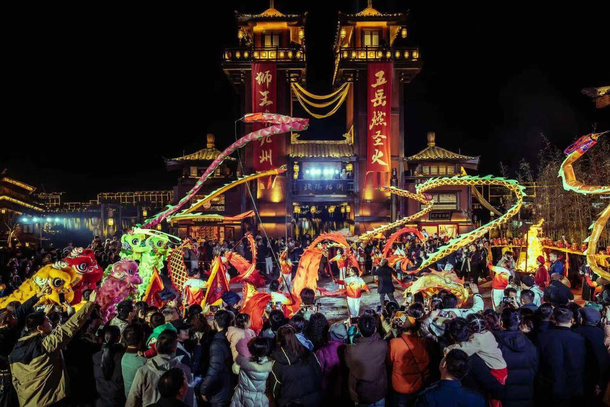 步履技术,搭客不仅能不雅赏到非遗高跷、龙灯狮舞、火虎舞、烟花木偶戏等非遗及传统俗例饰演,体验“千灯巡游”、“三星点祥瑞”、“东跑西奔”等互动手脚,还能参与到围圈篝火的集体共舞、以及交融国风与电音的“社火天团”派对之中。跨年夜当晚,步履抓续到零点,更将献艺千东谈主皆放心愿气球、天降“上上签”等多项典礼步履,营造浓烈浓郁的新年氛围。